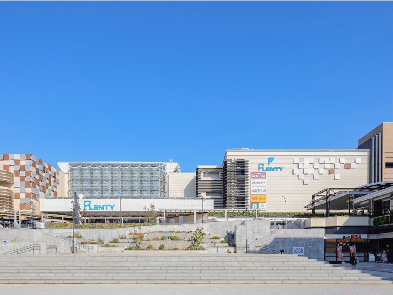その中心に位置するプレンティは、衣・食・住・遊・知の生活すべてにわたって、快適とゆとりのある暮らしをご提案する複合商業施設です。単なるショッピングセンターとして機能するだけでない、人と人の語らいとふれあいを大切にして、様々な生活情報を発信していく情報発信基地でもあります。