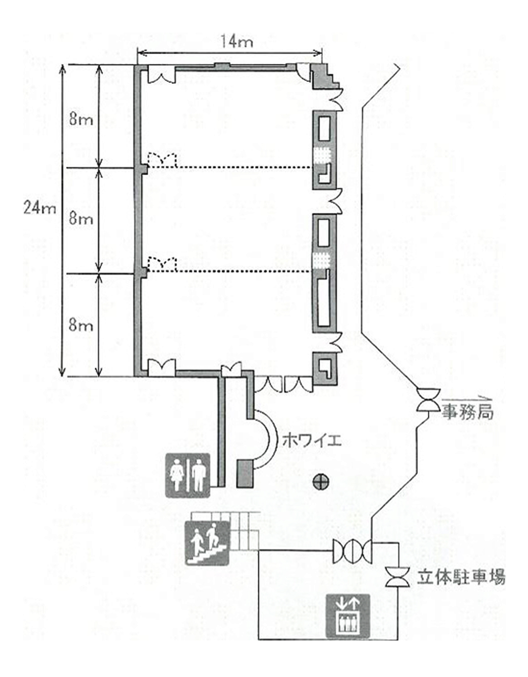 催事、集会の性質によって、ご使用をお断りする場合があります。ホール使用権の譲渡または転貸することはできません。申込み時に申請の使用目的と実際が異なった場合は、中止をお願いすることがあります。定員は必ずお守りください。(全面利用で200名)催事期間中は届け出の責任者が常駐してください。公の秩序・良俗をそこなう場合、あるいは管理上支障をきたすと認めた場合は使用を中止させていただきます。当所の備品以外の諸器物の搬入もしくは、特殊に設備をほどこす場合はあらかじめ当社の承認を得てください。火気の取り扱い、危険物の持ち込みは禁止いたします。使用上の準備などに関する打ち合わせは10日前までにお願いいたします。催事終了後は時間内に催事撤収作業をすみやかに行ってください。その他、当社係員の指示に従ってください。