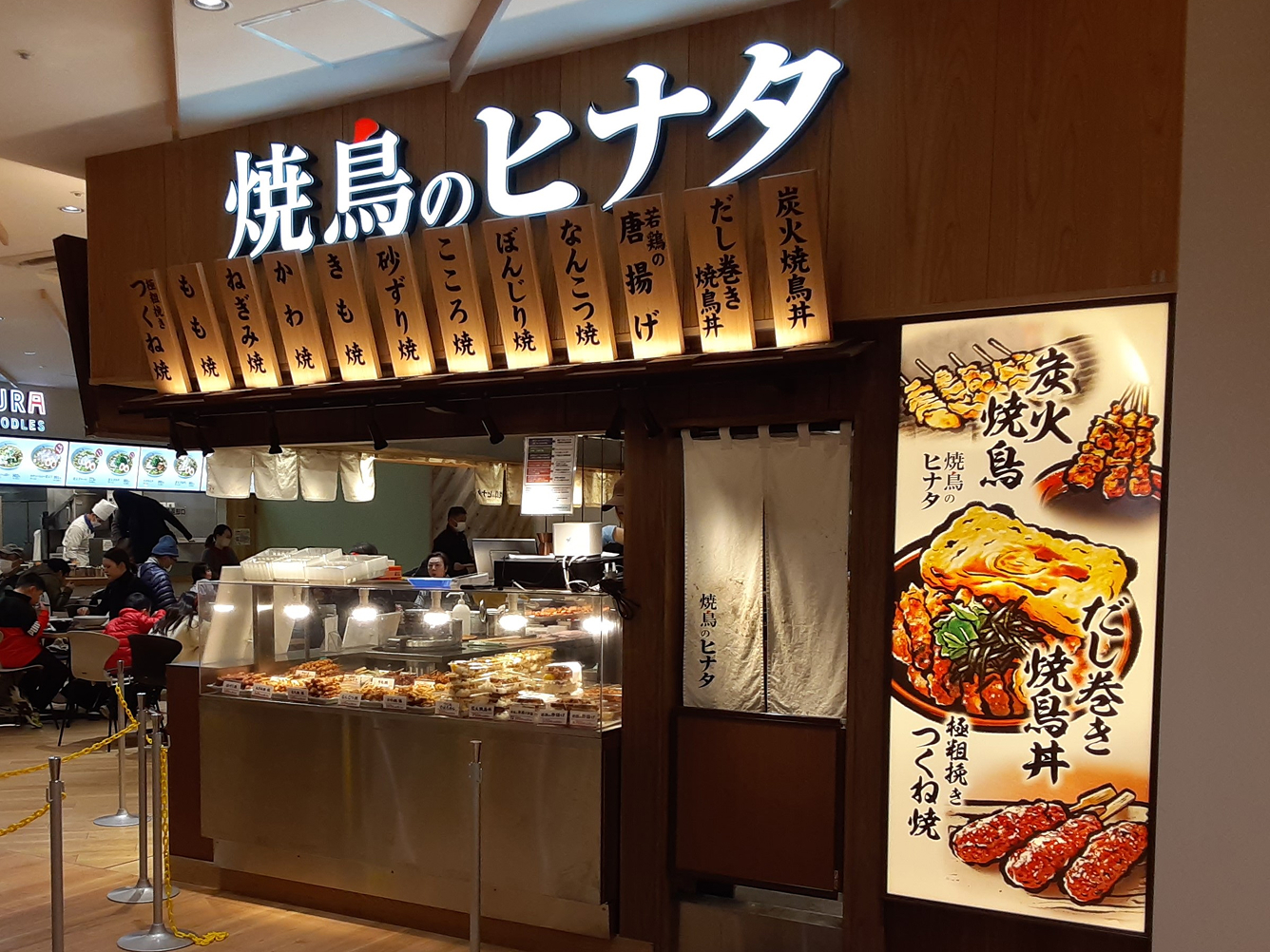 神戸で人気の「焼鳥のヒナタ」がフードコートに初出店します。香ばしい炭火で焼かれたボリューム満点の「炭火焼鳥丼」と、だし巻きが丸ごと1本入った「だし巻焼鳥丼」が一番人気!専門店ならではの商品でご来店お待ちしております。