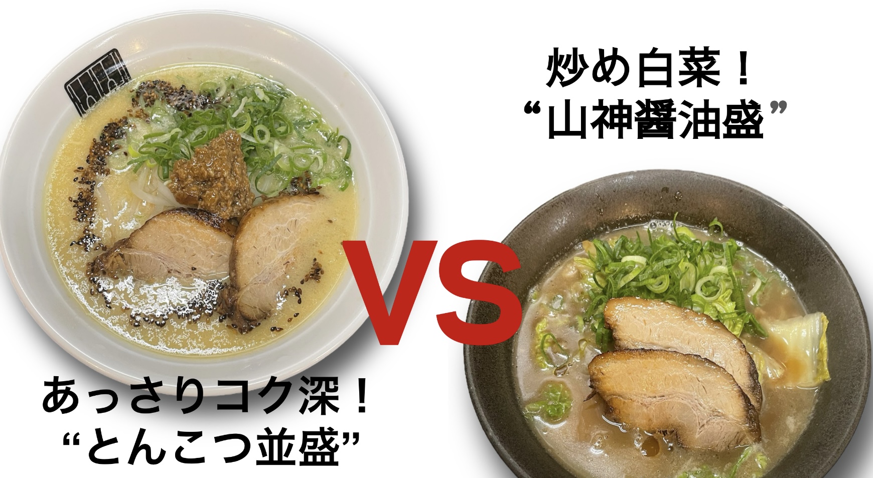 あっさりコク深とんこつ並盛 vs 炒め白菜山神醤油盛り